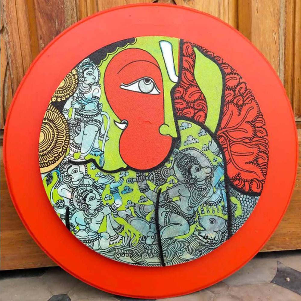 The typical price range of a Hanuman painting by Ramesh Gorjala starts from around ₹50,000 for smaller works and goes up to multiple lakhs for his larger detailed paintings. The combination of traditional Kalamkari techniques with mythological storytelling and intricate craftsmanship raises the artwork’s value.